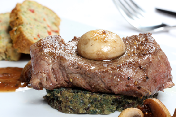 Filet steak (Arg.) with brandy-mustard sauce, roasted mushrooms and potatoes Borclub